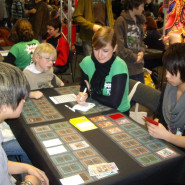 Neben Sammelkartenspielen werden am Stand auch einige der von Amigo vertriebenen Gesellschaftsspiele vorgestellt, so dass sich immer wieder spontan Spielergrüppchen bilden, um beispielsweise eine Partie Halli Galli oder einen der anderen Klassiker zu spielen.