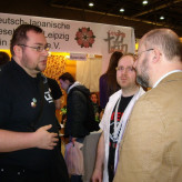 Ein weiterer Stand in unserer Nähe gehört der Deutsch-Japanischen Gesellschaft Leipzig in Sachsen e. V.. Da der City Comics Inhaber Henrik Kontakte zum Verein hat (da im City Comics auch Manga-Zeichenkurse angeboten werden und man immer bei ähnlichen Aktionen dabei ist), konnten wir uns kurz mit dem Präsidenten Thomas Schulze unterhalten. Ihm erläuterten wir kurz die Anstrengungen unseres Designers und Freunds Frank, die er mit Hilfe...